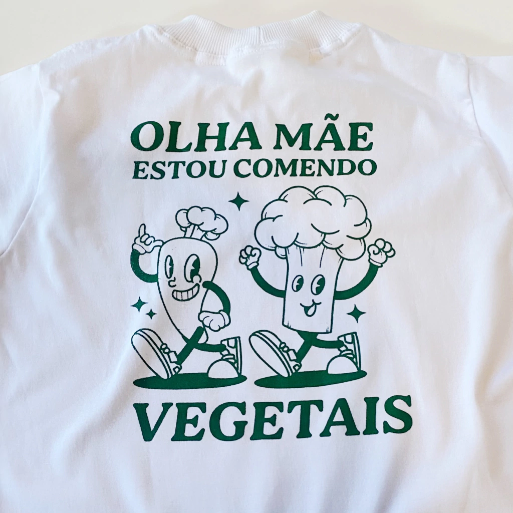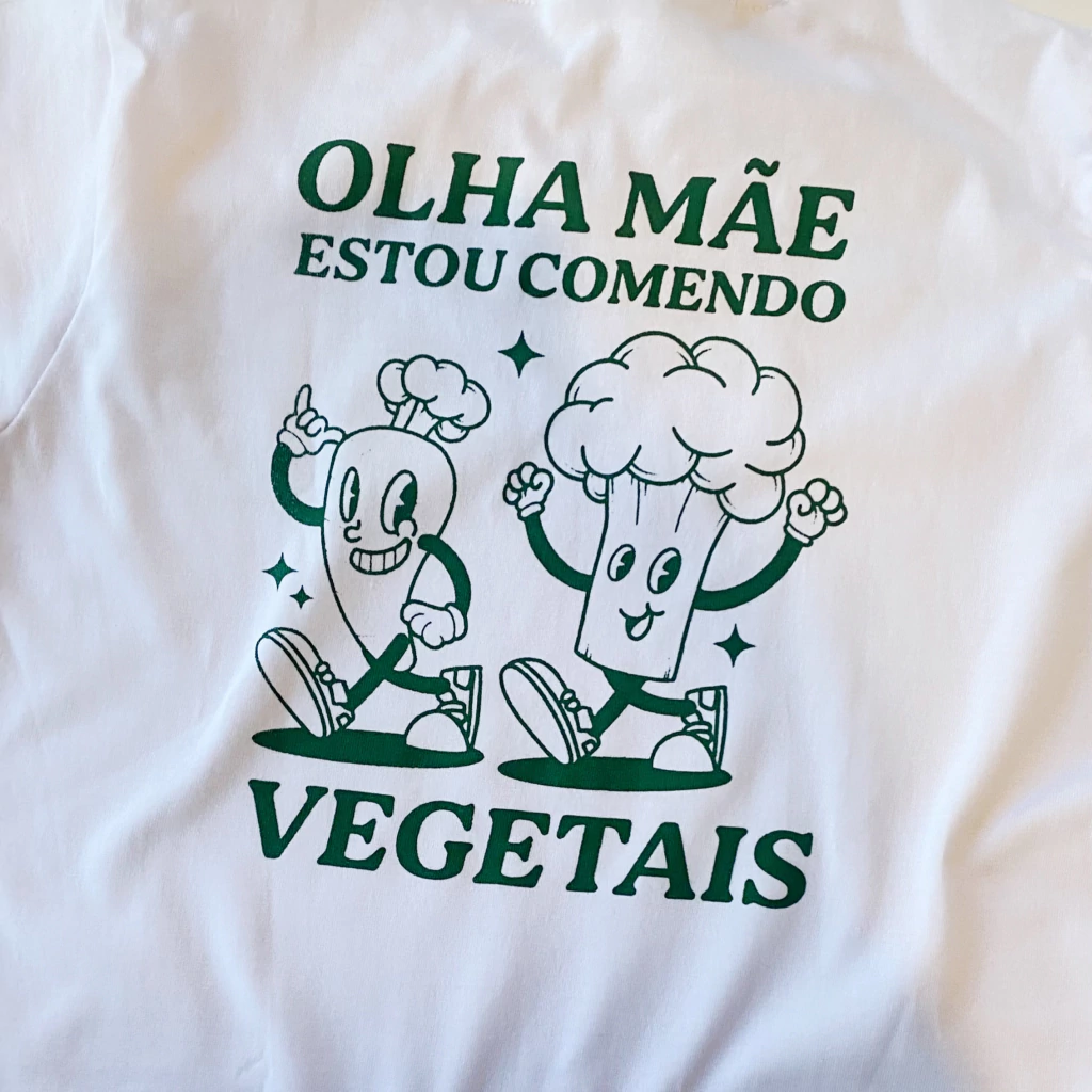 Camiseta em parceria com @guiavegetariano (hoje @Camilapiresveg) em 100% algodão com estampa serigrafada na cor verde