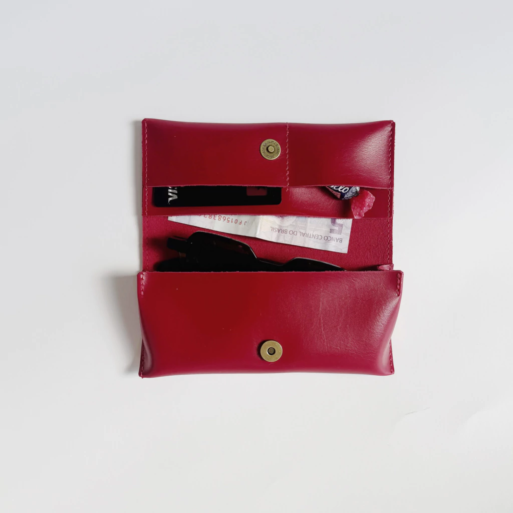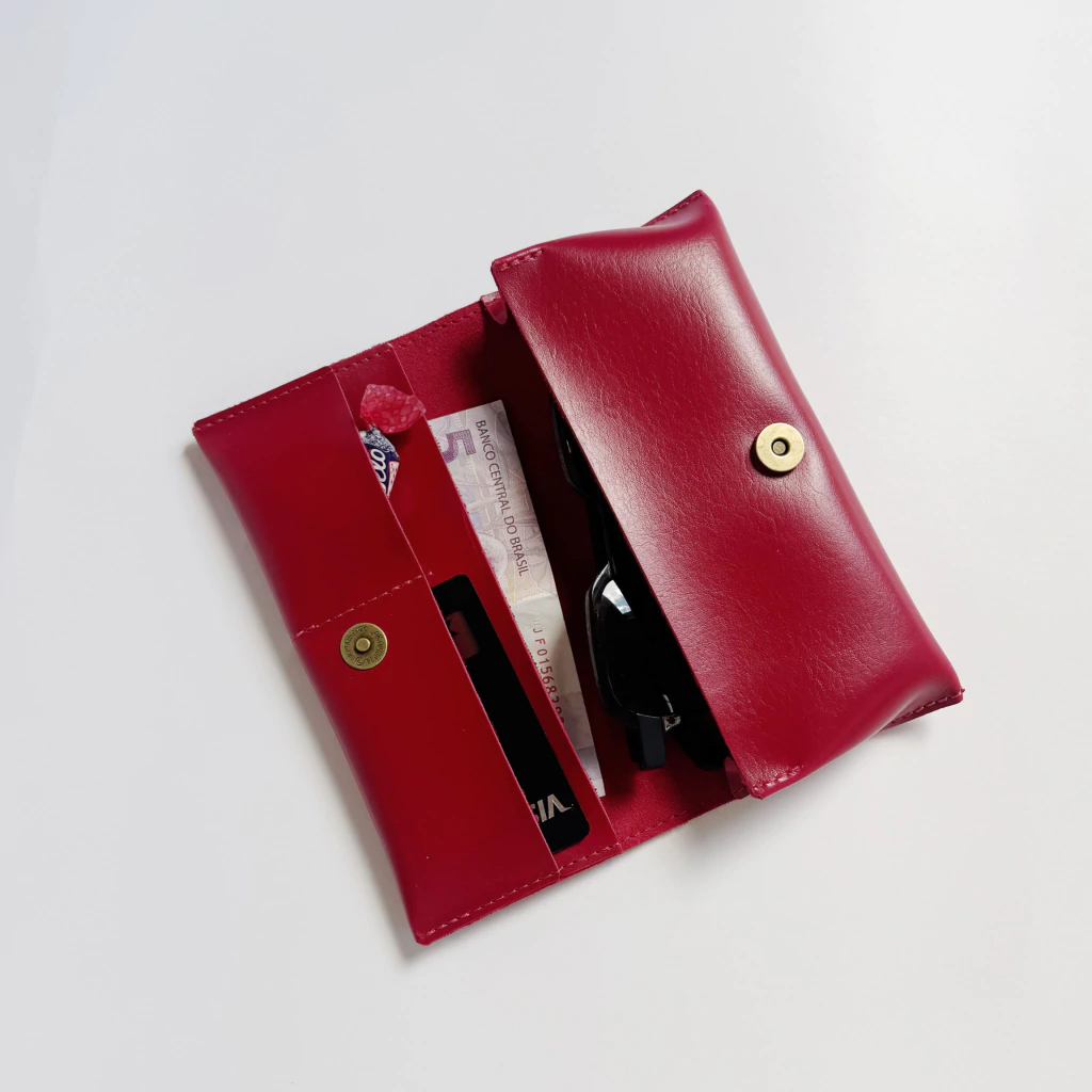 Case Clip: Seu óculos merece esse luxo! Feito em material sintético resistente e na cor vermelha vibrante, nosso case é o lar perfeito para seu óculos. Com espaço extra para documentos ou acessórios, ele protege contra arranhões e quedas.